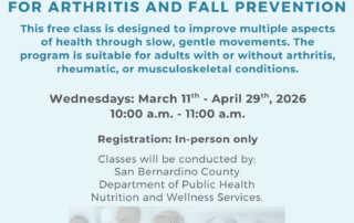 Improve Your Balance & Health with FREE Tai Chi Classes! Looking for a gentle way to boost your wellness? Join the San Bernardino County Department of Public Health for a free Tai Chi for Arthritis and Fall Prevention series! This program is perfect for adults of all fitness levels—whether you’re managing arthritis or just want to improve your strength and stability through slow, mindful movement. When: Wednesdays, March 11th – April 29th, 2026 Time: 10:00 a.m. – 11:00 a.m. Where: Percy Bakker Community Center (9333 “E” Avenue, Hesperia) Registration: In-person only Come see how gentle movement can make a big [...]