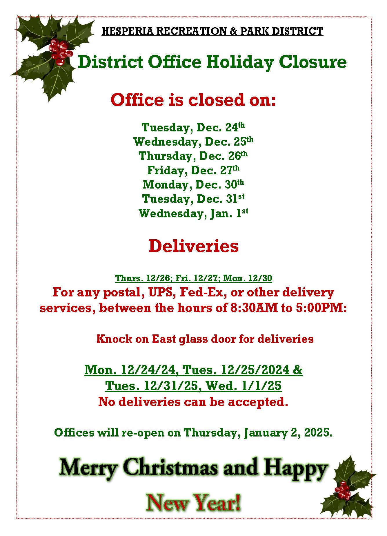 Lime Street Park and Community Center 16292 Lime Street, Hesperia, CA, United StatesHolidayATTENTION In observance of Christmas and New Years, our District [...]