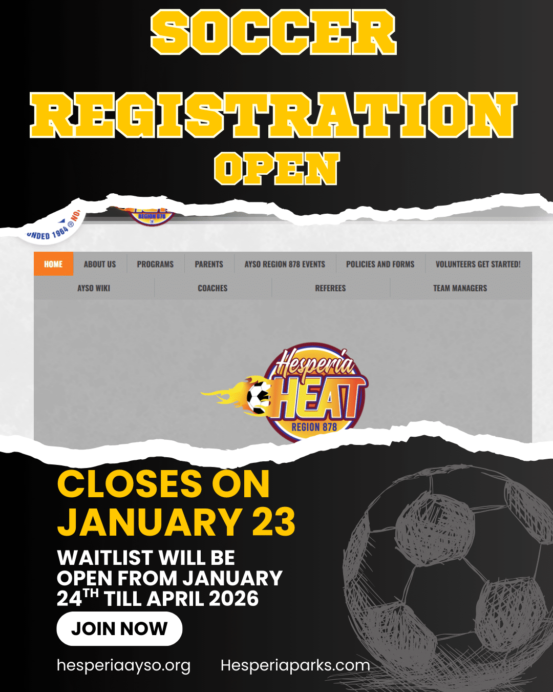 Maple Park 7770 Maple Ave., Hesperia, CA, United StatesRegistration⚽ Spring 2025 Youth Soccer Registration is OPEN! ⚽ Get [...]