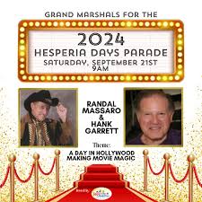 Come Join us for the 75th Annual Hesperia Days Parade! The parade will travel from I Ave. to E Ave. on Main Street in Hesperia. This year’s theme is “A Day in Hollywood: Making Movie Magic”. Going with the theme, this year’s Grand Marshals for the parade are Actors Randall Massaro and Hank Garrett!! For more information, to become a sponsor, or to enter a parade float, please visit https://rocknourdisabilitiesfoundation.org/hesperia-days-parade. We hope to see you there!