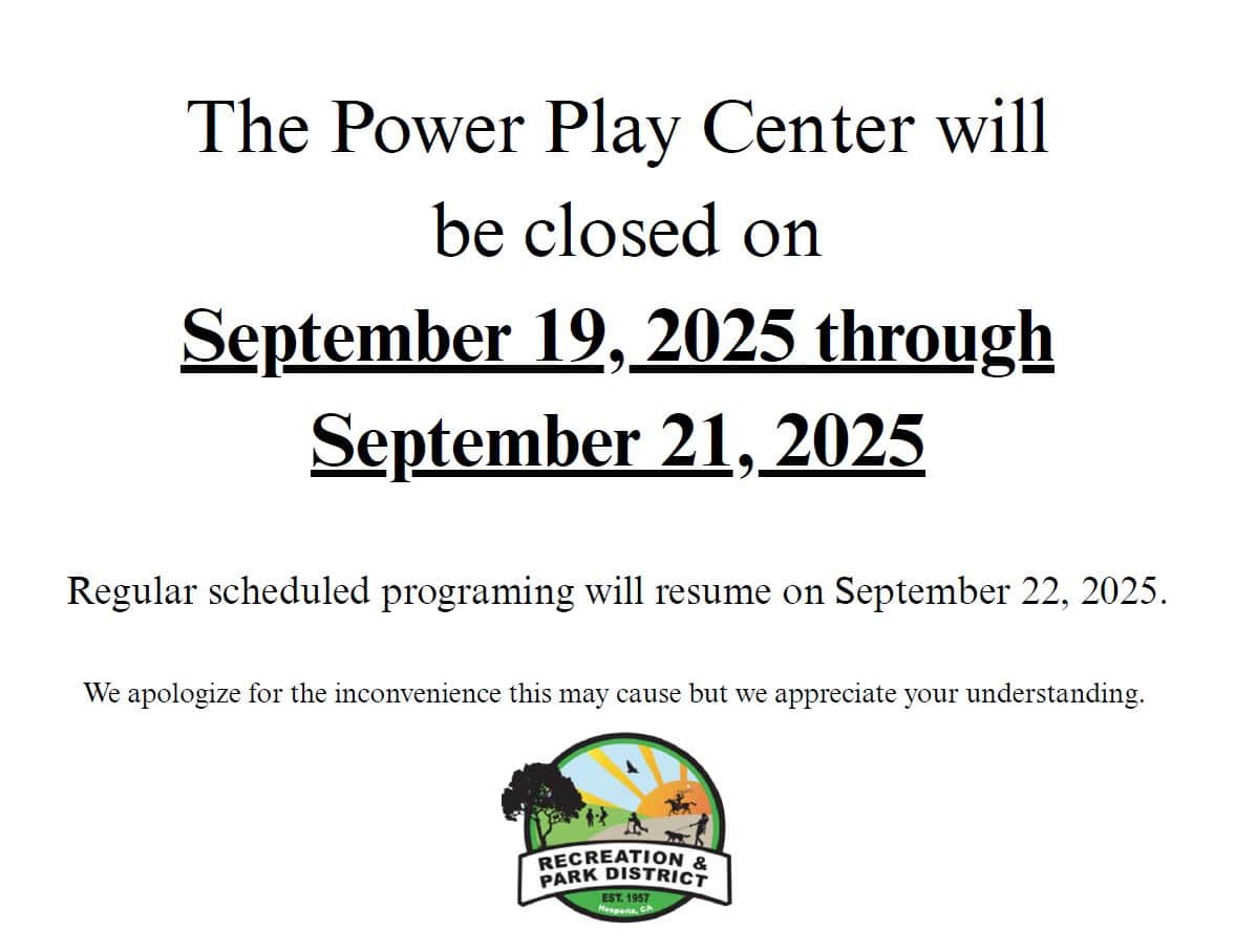 Please note that The Power Play Center will be closed from September 19, 2025, through September 21, 2025. Regular scheduled programming will resume on September 22, 2025.