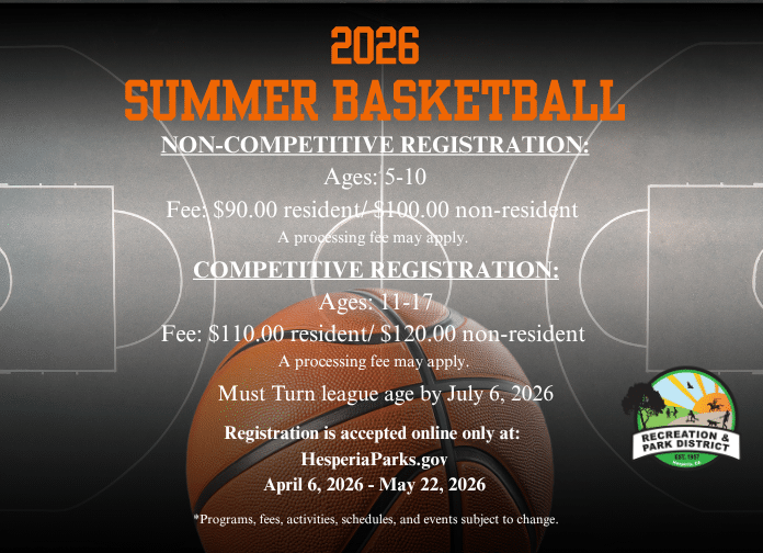 Is your athlete ready to hit the court? Whether they’re just starting out or looking for some serious competition, Hesperia Recreation & Park District has a spot for them!